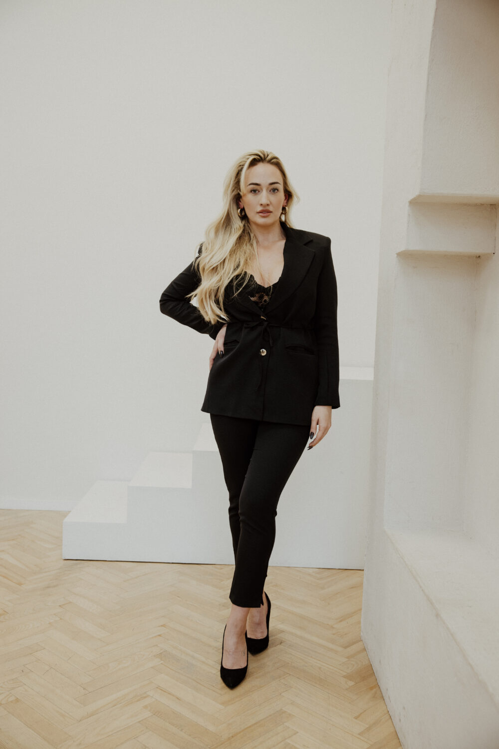 Elegancki garnitur „Luxury Set” marki Malum to propozycja dla kobiet, które szukają uniwersalnej stylizacji – składająca się z marynarki i spodni, dostępna w ponadczasowej czerni. Krój zestawu daje możliwość szybkiego przejścia od biurowej formalności do wieczorowego szyku — wystarczy zmienić dodatki, by uzyskać nowy efekt. Wyrafinowana czerń pozwala zestawić go z minimalistycznymi akcentami lub odważniejszymi kolorami — to inwestycja w garderobę, która będzie dźwigać wiele okazji.
