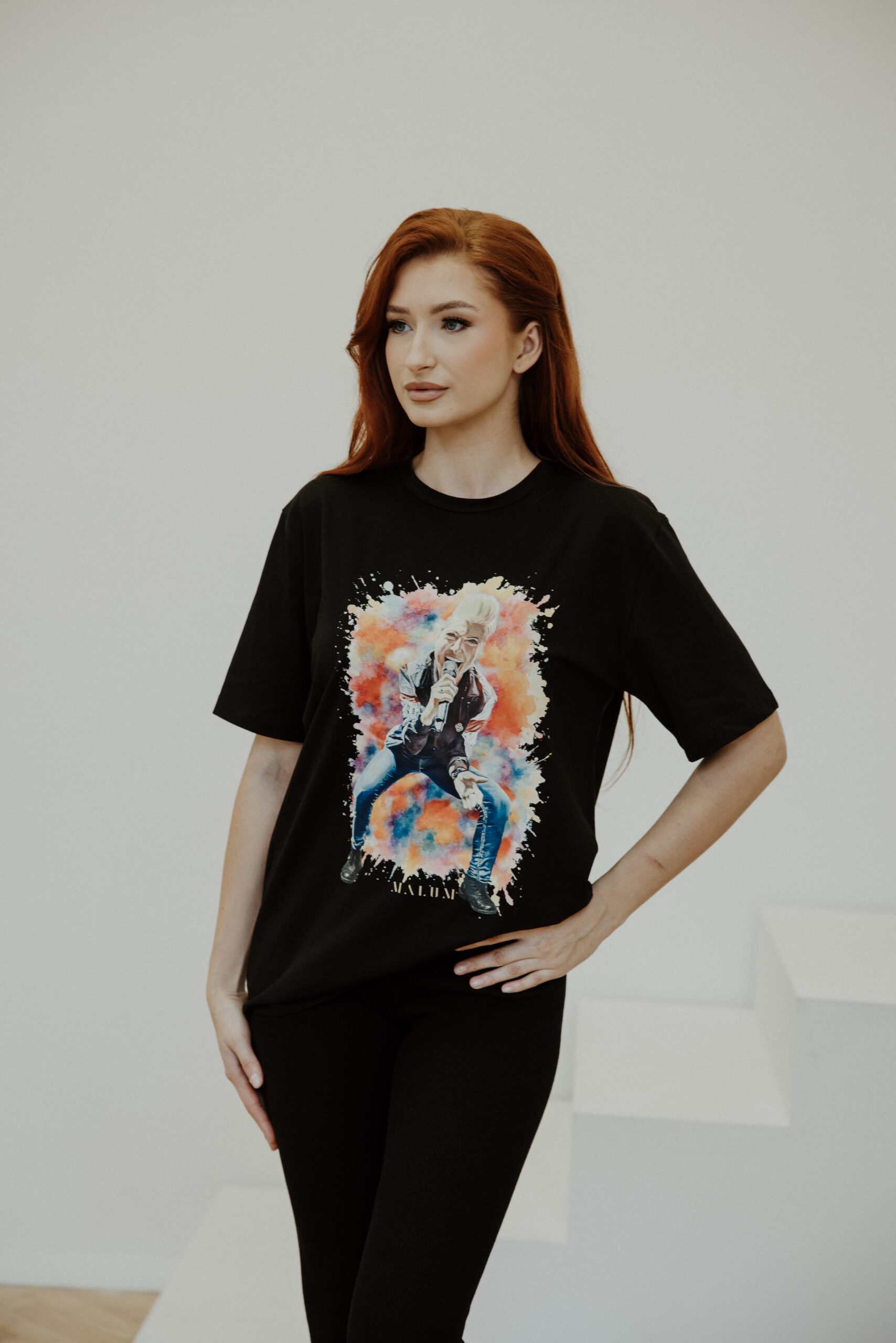 Elegancka koszulka „Magda Music Style” marki Malum to wyjątkowy element garderoby dla fanek stylu i muzyki — dostępna w dwóch klasycznych kolorach: białym i czarnym. Oversize’owy fason łączy komfort noszenia z wyrazistym printem z wizerunkiem artystki, który przyciąga uwagę i nadaje charakteru.
